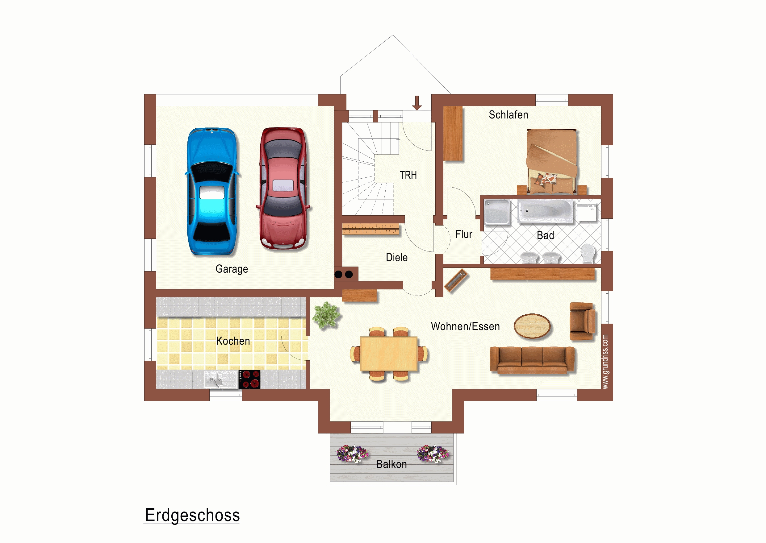 Ansicht Treppenhaus Wohn-Essbereich Küche Wohn-Essbereich Bad/WC Schlafzimmer Balkon Stellplätze Ansicht Ansicht Erdgeschoss