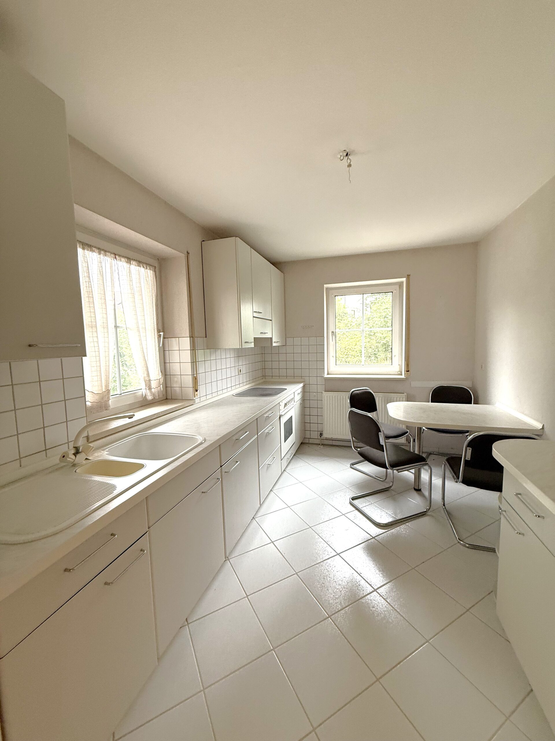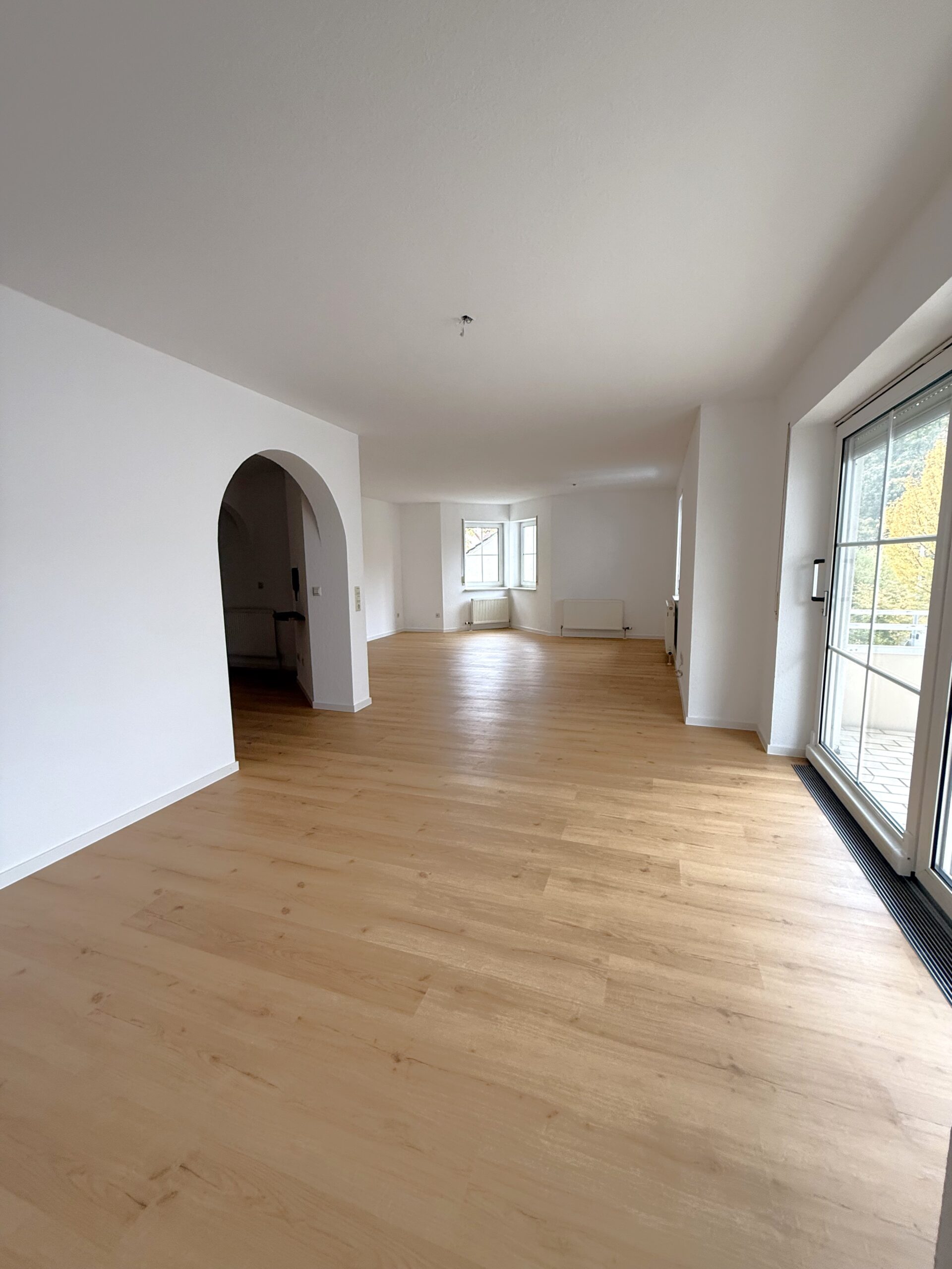 Diese großzügige 3,5-Zimmer-Obergeschosswohnung mit einer Wohnfläche von ca. 108 m² befindet sich in einem gepflegten Mehrfamilienhaus aus dem Jahr 1987. Im Jahr 2025 wurden die Wand- und Bodenbeläge größtenteils erneuert, wodurch sich die Wohnung in einem ausgezeichneten Zustand präsentiert. Ein besonderes Highlight ist der etwa 6 m² große Balkon, der direkt vom Wohnzimmer aus zugänglich ist und einen schönen Blick ins Grüne bietet – ideal für entspannte Stunden im Freien.