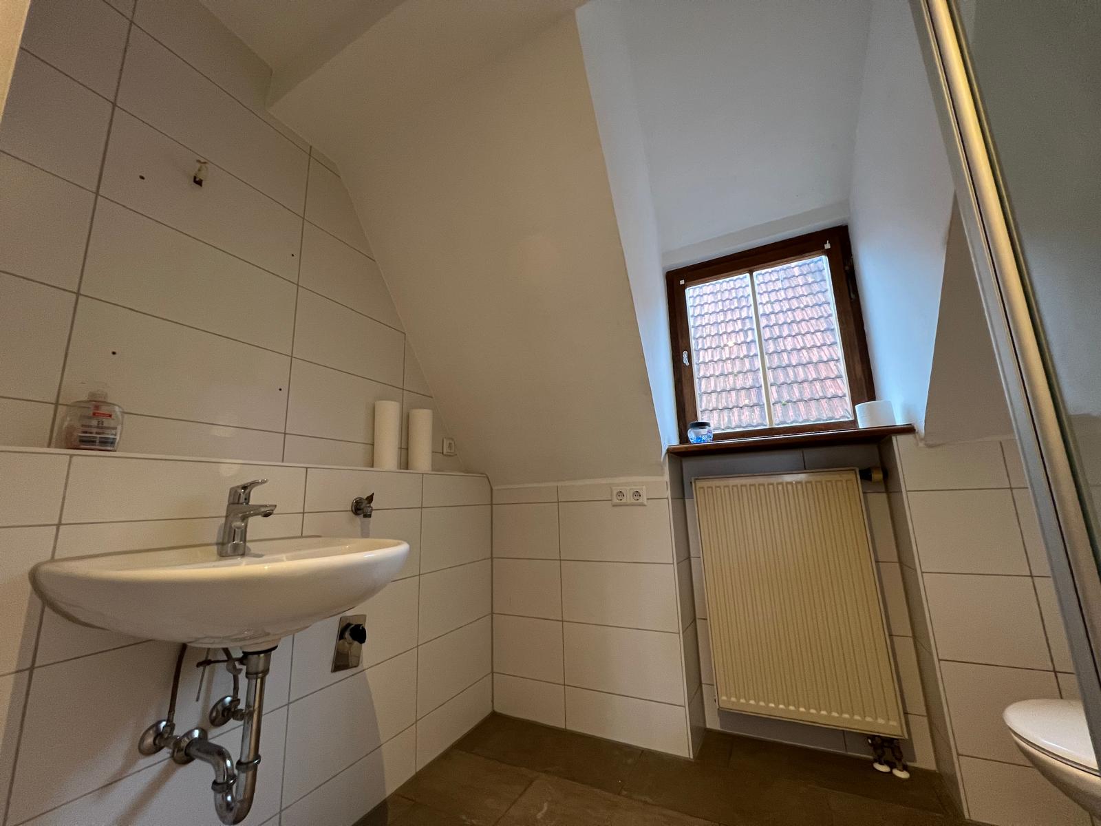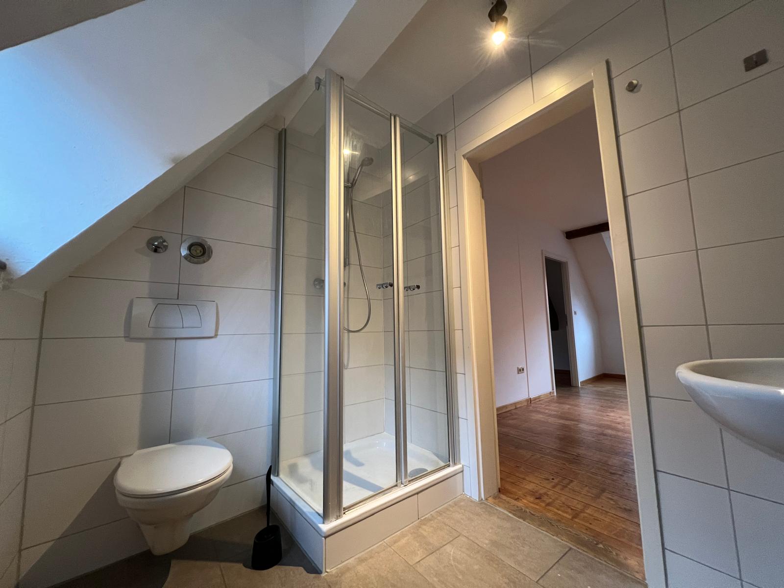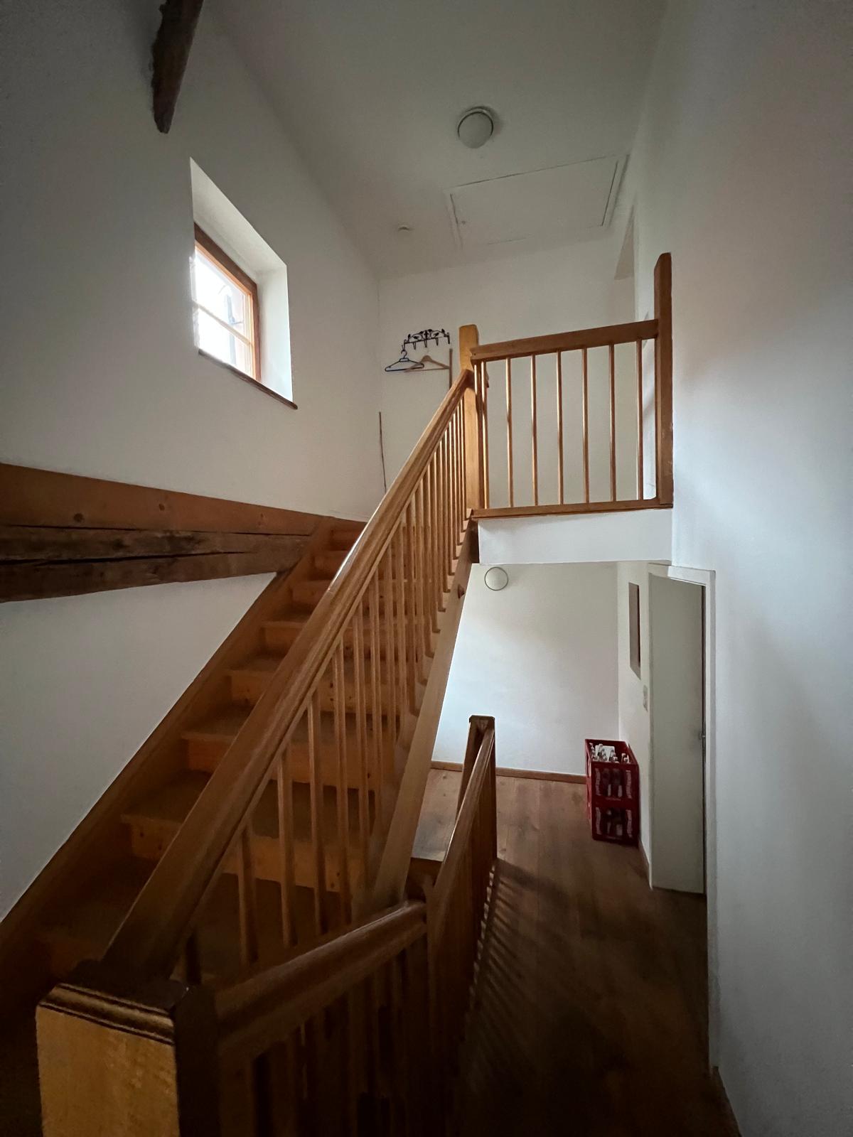 Der Boden in der gesamten Wohnung ist mit alten Holzdielen ausgelegt. Die Dielen und die Fachwerkbalken verleihen der Wohnung eine warme und gemütliche Atmosphäre und sorgen für ein angenehmes Wohngefühl. Insgesamt bietet die Immobilie eine solide Basis für ein komfortables Zuhause.